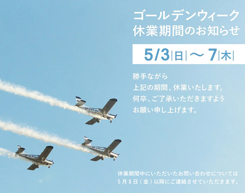 ゴールデンウィーク休業のお知らせ