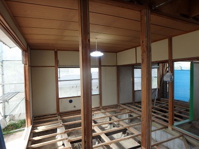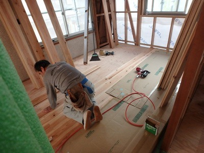 床貼り工事中。